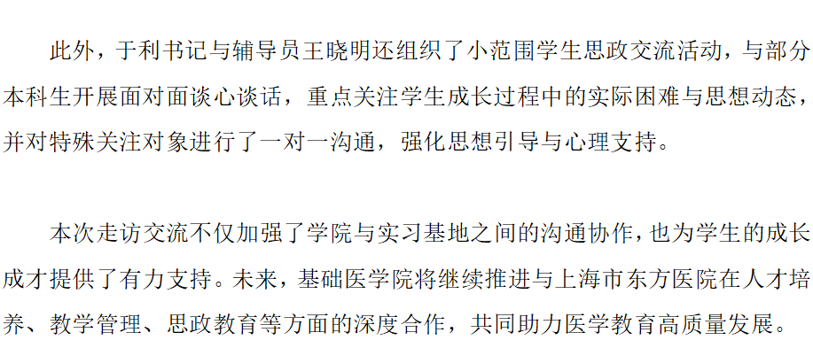 基础医学院赴上海市东方医院开展考察交流与学生思政教育